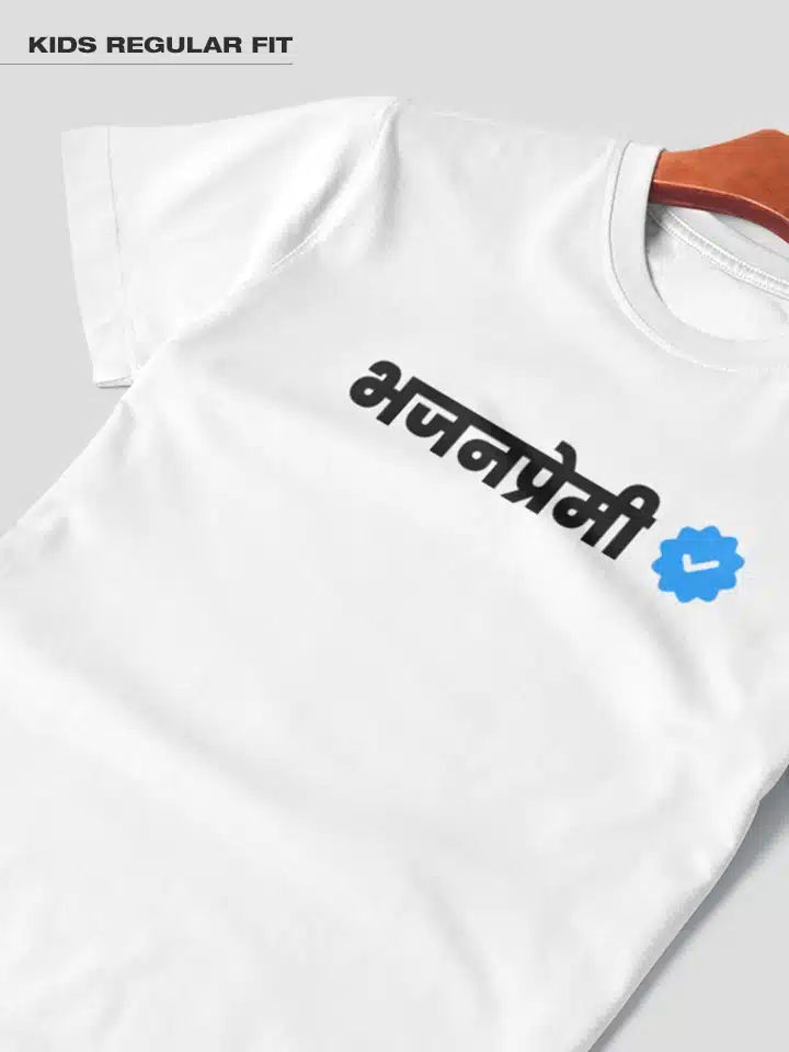 Bhajanpremi Verified -Marathi Printed Unisex Kids T-shirt Crafted from 180GSM Cotton with a round neck, pre-shrunk, bio-washed, and with half sleeves.