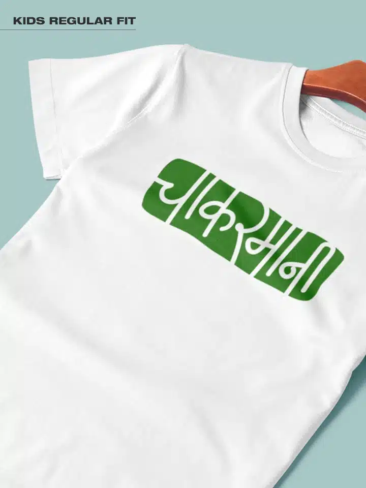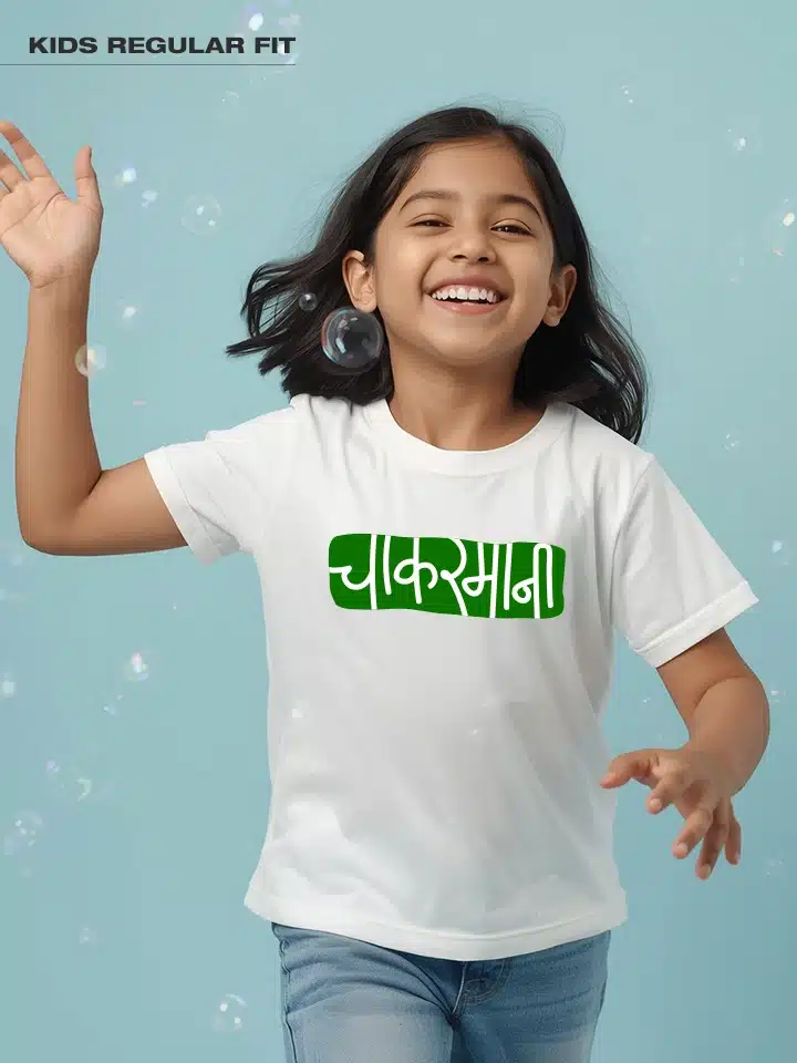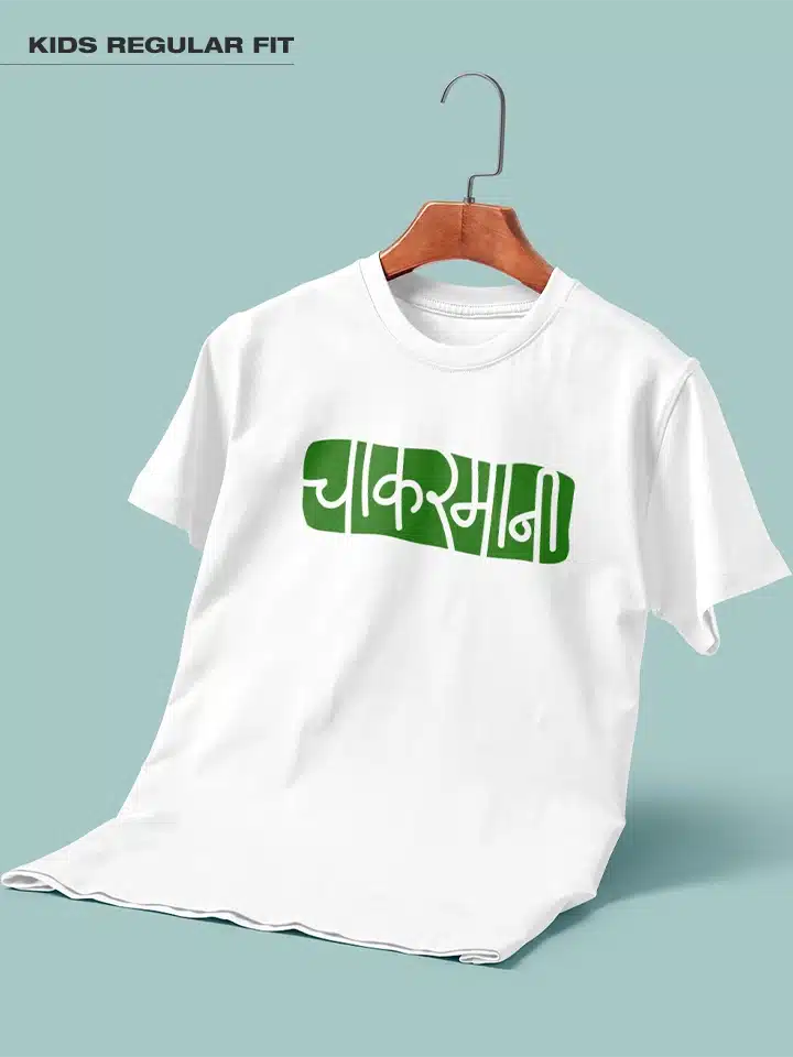 Chakarmani -Marathi Printed Unisex Kids T-shirt Crafted from 180GSM Cotton with a round neck, pre-shrunk, bio-washed, and with half sleeves.