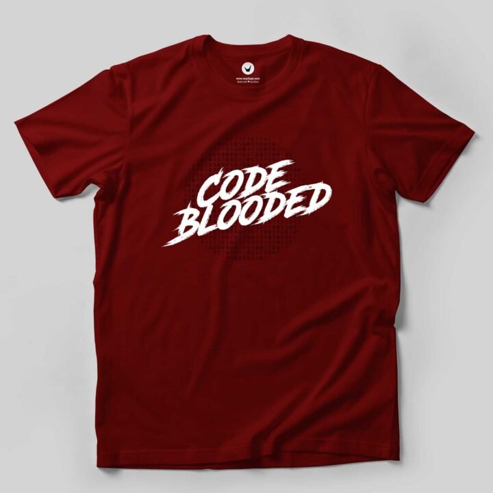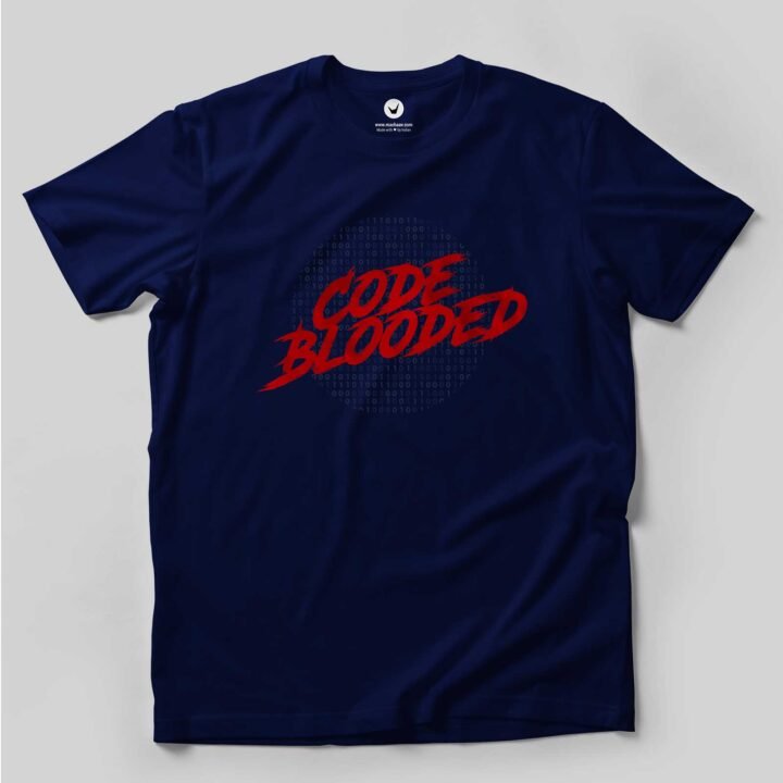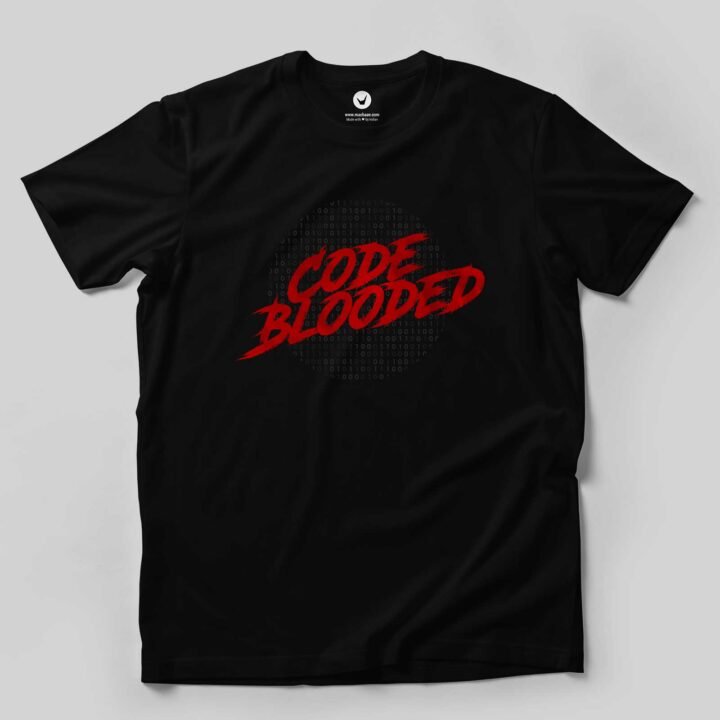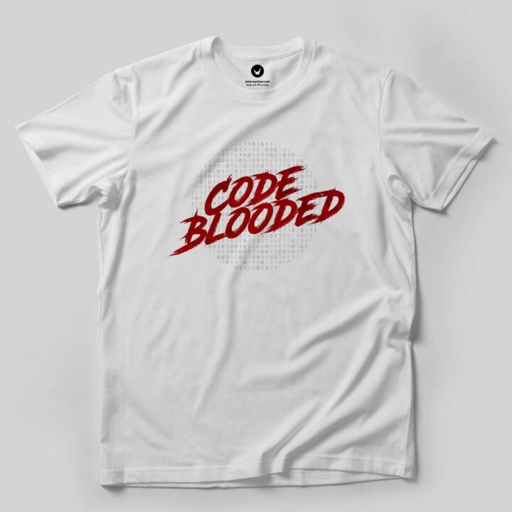 Code Blooded. Programmer print unisex T-shirts. Crafted from 180GSM Cotton with a round neck, pre-shrunk, bio-washed, and with half sleeves. Available in White, Red, Blue, and Black Colors.