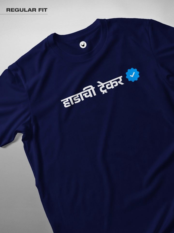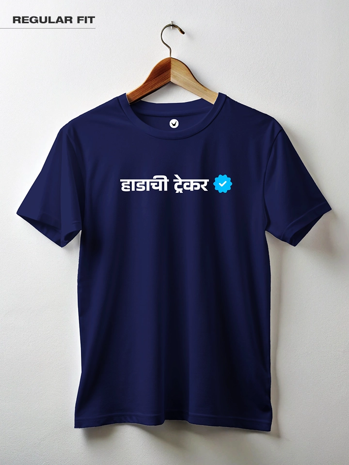Hadachi Trekker Marathi Printed Unisex T-shirt Crafted from 180GSM Cotton with a round neck, pre-shrunk, bio-washed, and with half sleeves. A