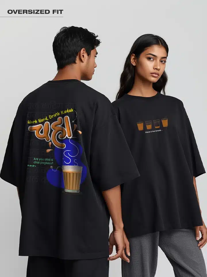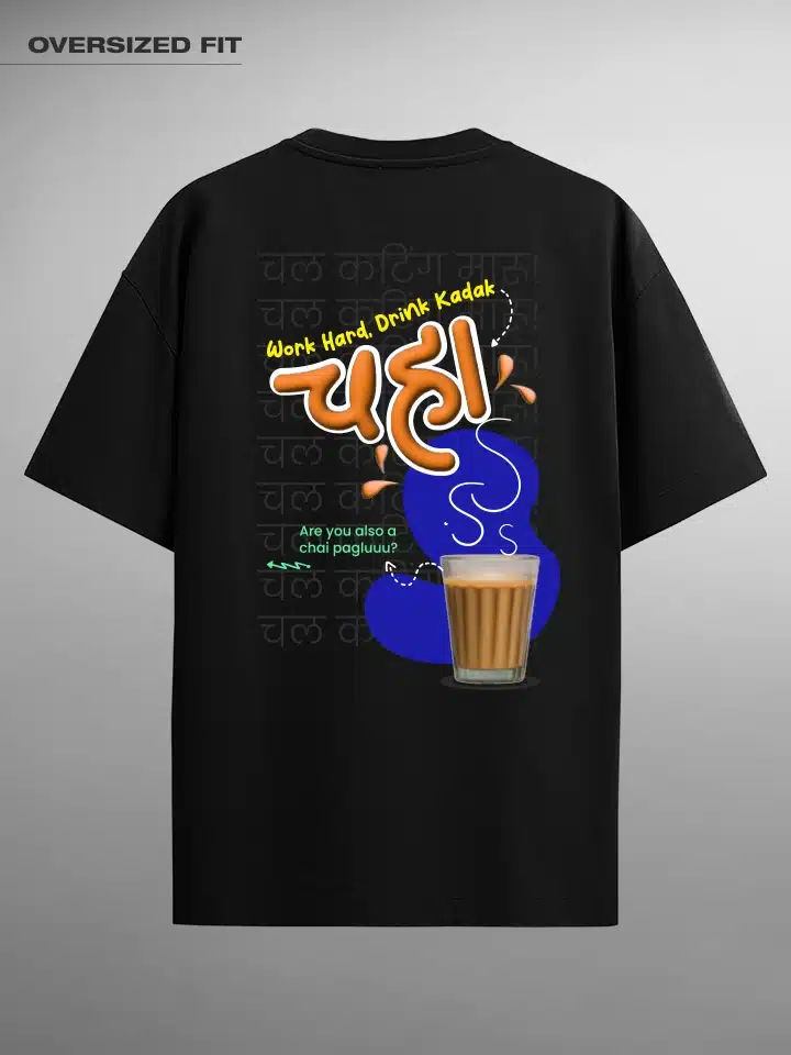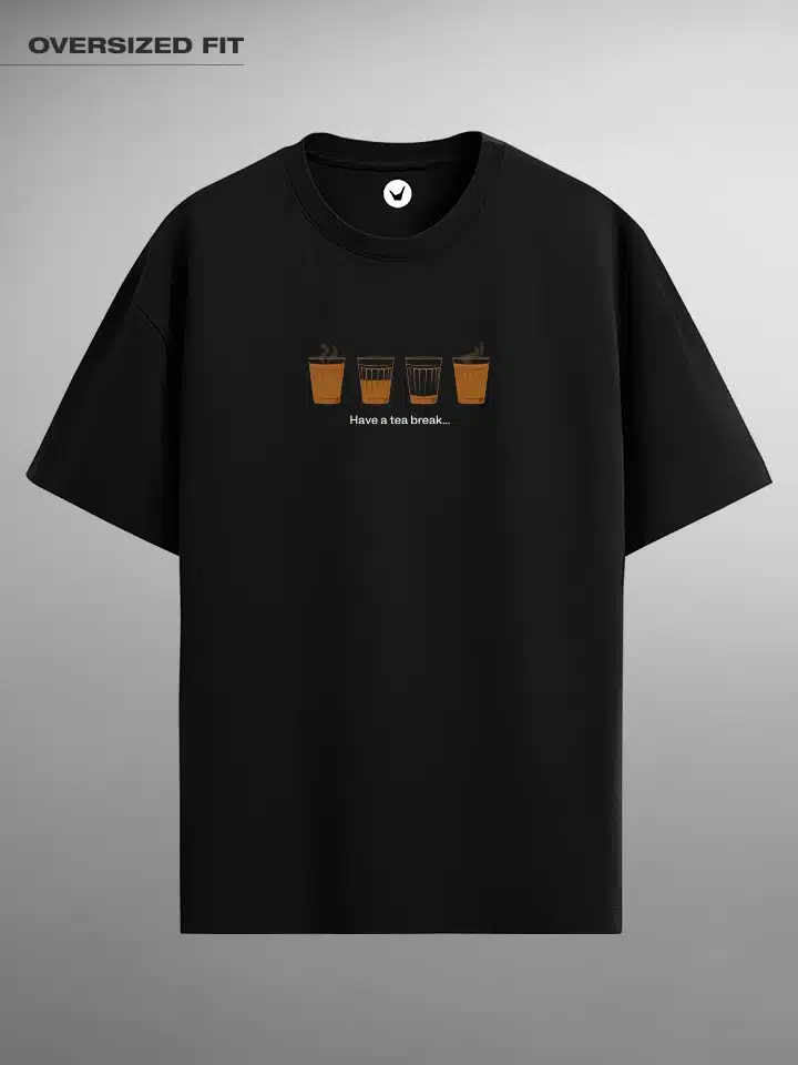 Have a Tea break. Marathi Unisex Oversized T-shirt Crafted from 200 GSM Cotton with a round neck, pre-shrunk, bio-washed.