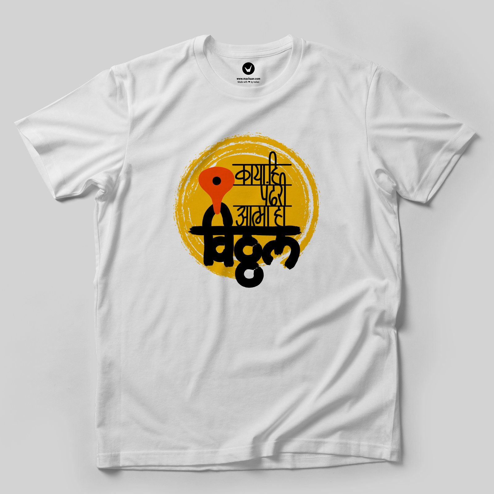 Kaaya He Pandhari Aatma Ha Vithaal. Specially for Lord Vitthal devotees, Waari T-shirt (काया हि पंढरी आत्मा हा विठ्ठल). Marathi Printed Unisex Waari T-shirt. Crafted from 180GSM Cotton with a round neck, pre-shrunk, bio-washed, and with half sleeves. Available in Blue, Red, and White Color.
