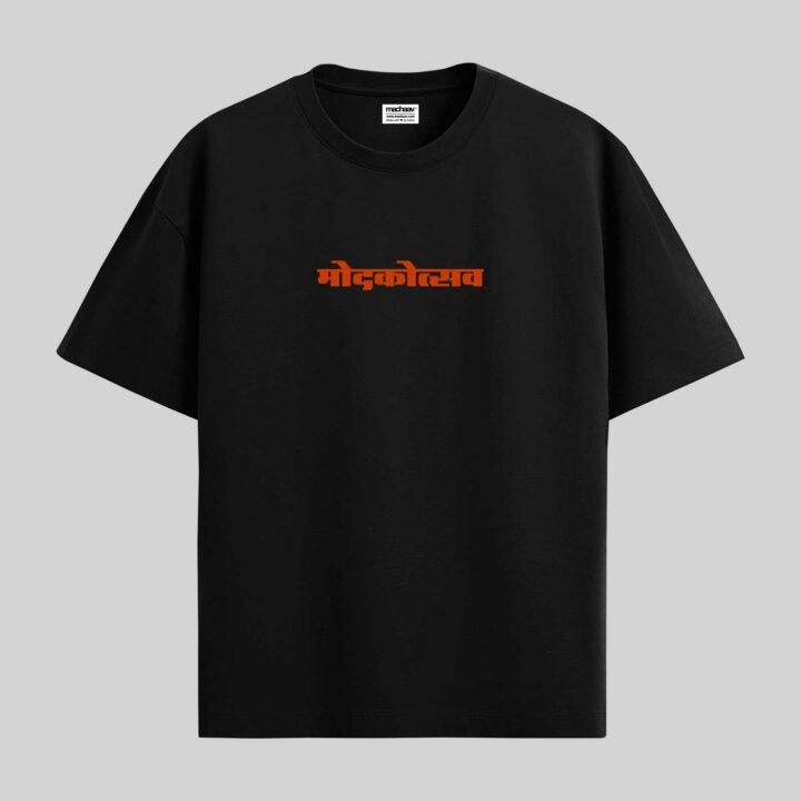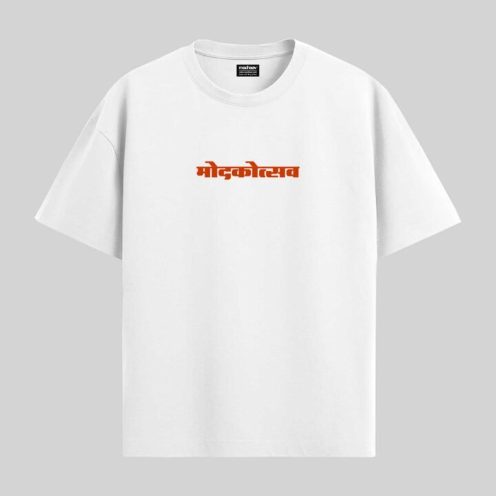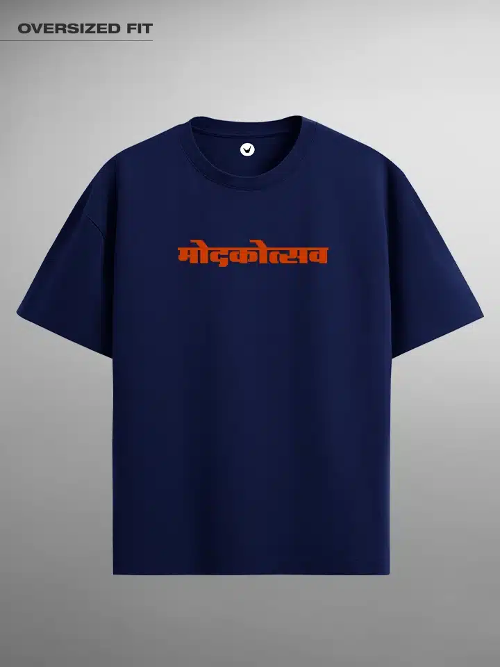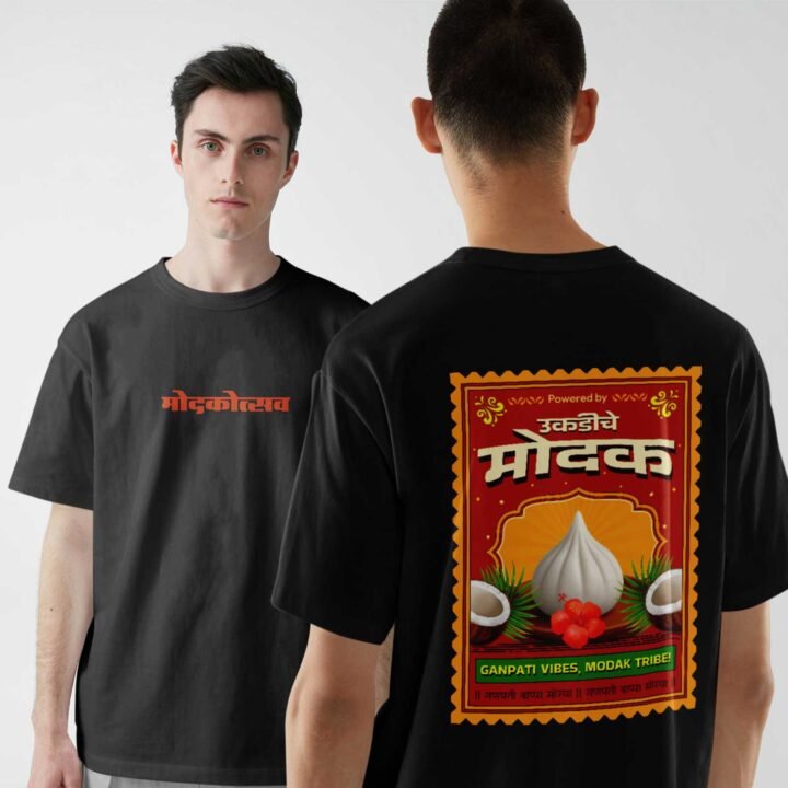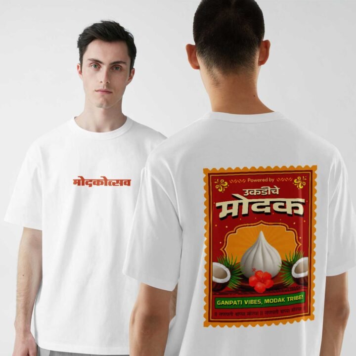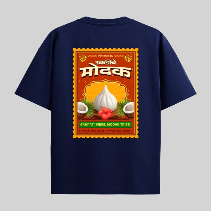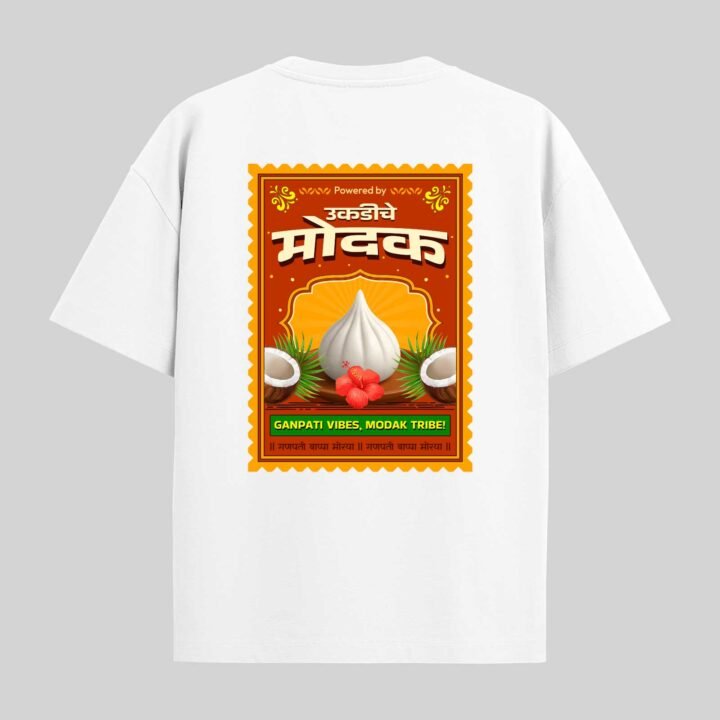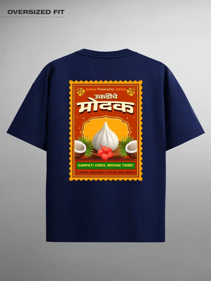 Modak Vibe -Marathi Unisex Oversized T-shirt Crafted from 200 GSM Cotton with a round neck, pre-shrunk, bio-washed.