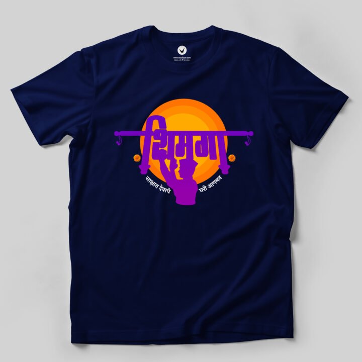 Celebrate Shimga (Holi) with our special edition t-shirt. Marathi Printed Unisex T-shirt for Shimga Crafted from 180GSM Cotton with a round neck, pre-shrunk, bio-washed, and with half sleeves. Available in Blue, and White Color.