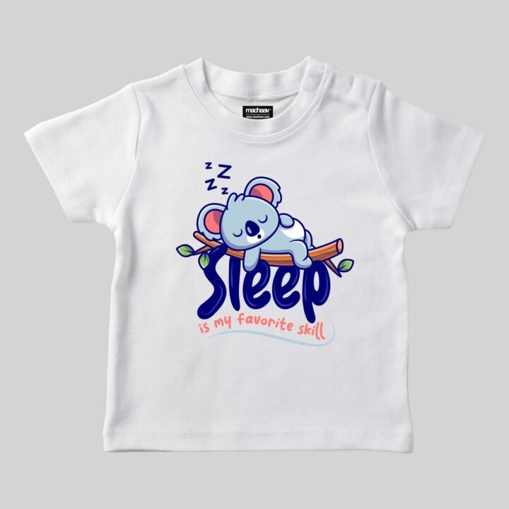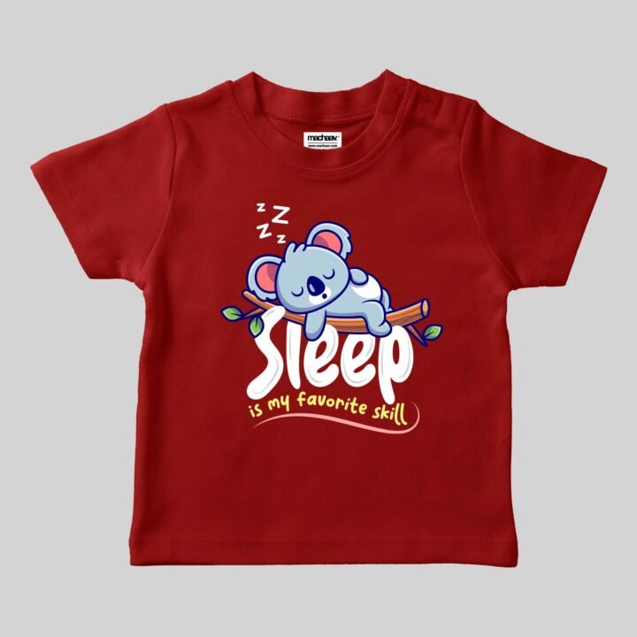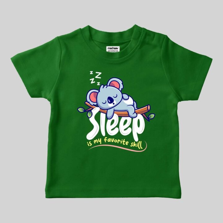 Sleep is my favorite skill. Printed Unisex Kids T-shirt Crafted from 180GSM Cotton with a round neck, pre-shrunk, bio-washed, and with half sleeves. Available in White, Red, Green, and Blue colors.